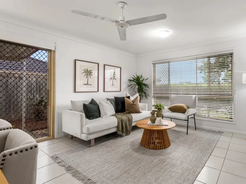 The home offers four versatile rooms, including three generously sized bedrooms with timber-look vinyl flooring, all centrally located to the large, modern bathroom. The fourth room can easily function as a bedroom, study, media room or additional living space to suit your needs. The main bedroom enjoys convenient two-way access to the bathroom.