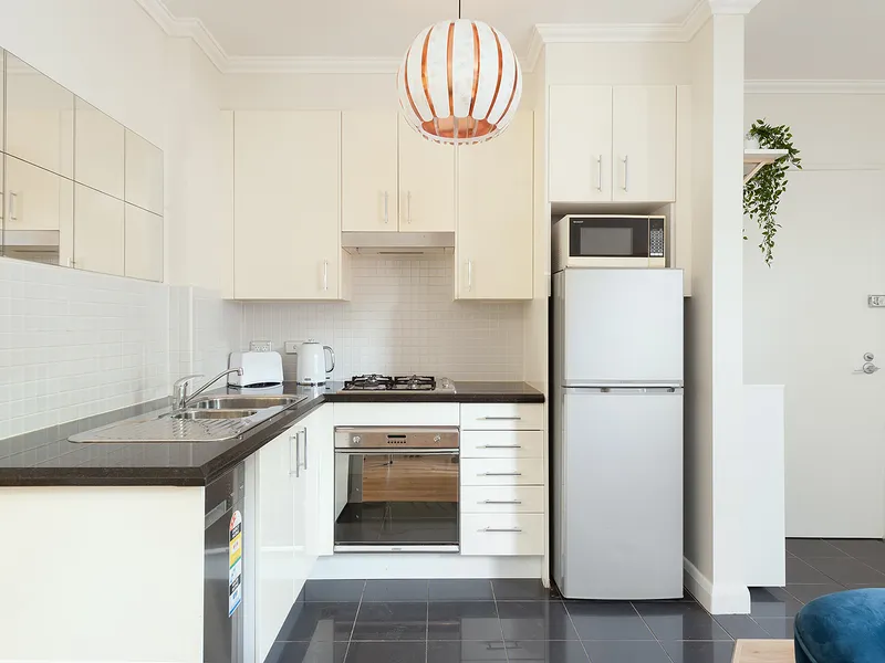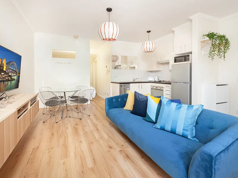Positioned within a secure and well-maintained complex, this stylish one-bedroom apartment offers a superb blend of comfort, convenience and low-maintenance living. Featuring timber flooring throughout and a modern open-plan layout, the interiors flow seamlessly to a generous private outdoor patio complete with BBQ, perfect for relaxed entertaining or quiet evenings at home. The apartment is fully furnished and thoughtfully appointed, ideal for those seeking a move-in ready residence with quality finishes and excellent natural light.