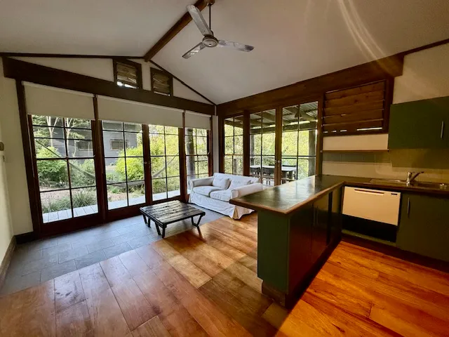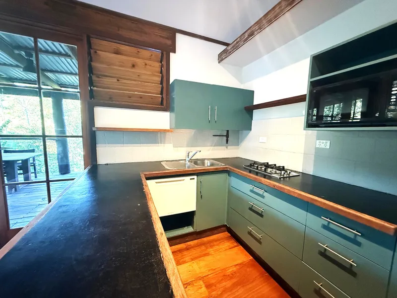 This open plan unit is filled with natural light and is tucked away at the rear of this boutique complex of only five residences. The main bedroom includes a built-in robe and ceiling fan, while both the balcony and bedroom enjoy glimpses of Currumbin creek.