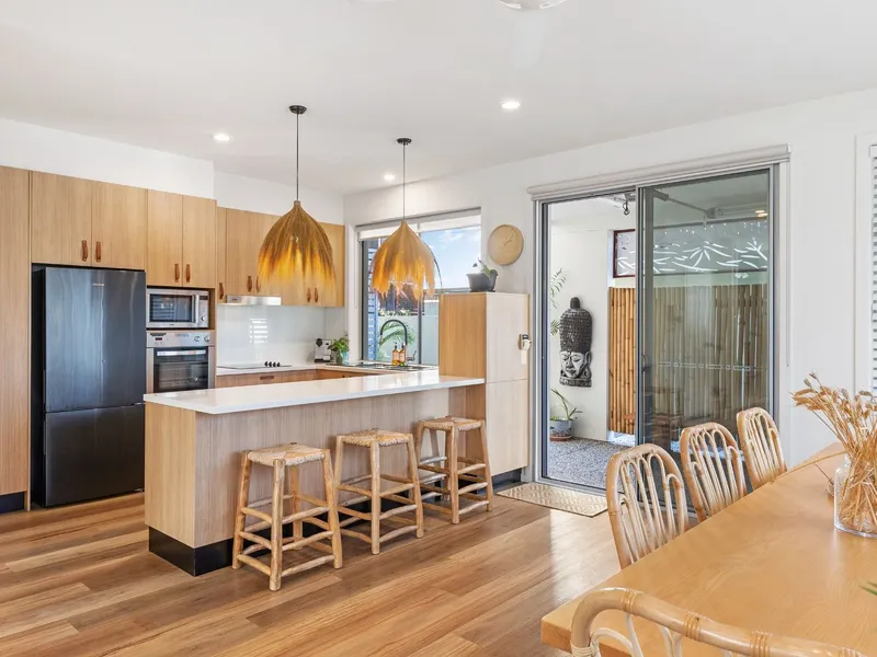 - Stylish double-storey sanctuary with soothing interiors, soaring ceiling heights and an enticing location, footsteps from Currumbin Beach, with no roads to navigate