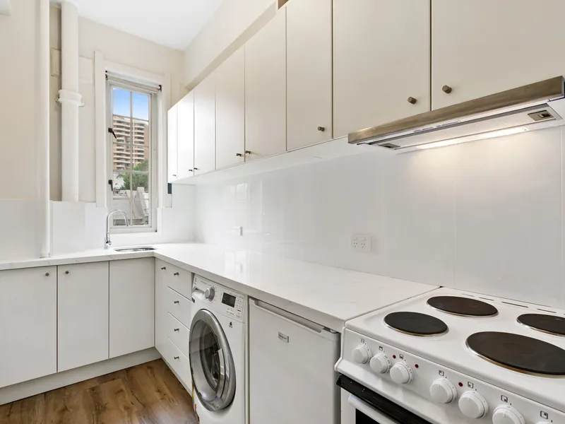 Positioned within the charming St James building, a secure Art Deco residence built in 1926, this beautifully renovated studio apartment offers character, natural light, and an unbeatable inner-city lifestyle. Located on Level 2 with a desirable north-facing aspect, the apartment enjoys excellent natural light throughout the day.