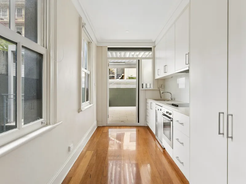 Tucked away in a quiet, tree-lined street, 57 Surrey Street presents a rare and versatile leasing opportunity in the heart of Darlinghurst. This expansive residence offers five generously sized bedrooms and three well-appointed bathrooms, perfectly suited to large families, shared living, or those seeking flexible accommodation. Featuring two full kitchens and two separate laundries, the home is ideal for dual living arrangements or added convenience. Beautiful wooden floorboards flow throughout, adding warmth and character, while off-street parking for two cars enhances everyday ease in this inner-city setting.
