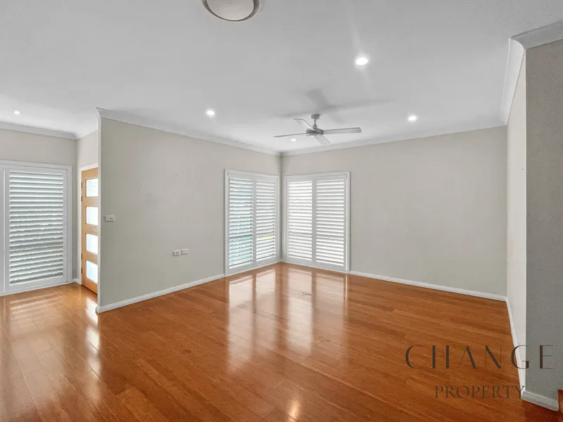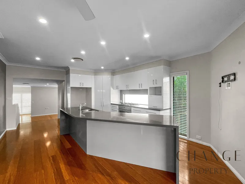 Designed for easy living, the home features beautiful bamboo flooring throughout the main living areas, zoned air conditioning for year-round comfort, and an abundance of storage spaces. The modern open-plan kitchen and dining space is the heart of the home, complete with a waterfall Caesarstone benchtop, 900mm double electric Ilve oven with gas cooktop, large pantry, and integrated dishwasher - perfect for family living and entertaining alike.