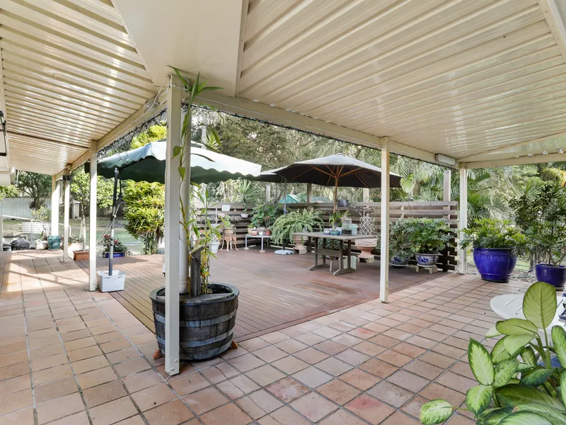 Venture outside to discover a true entertainer's paradise. The spacious covered alfresco area and timber sundeck provide the perfect setting for gatherings, whether it's a casual barbecue or an evening under the stars. Enjoy the benefits of a large shed, double bay carport, and double lock-up garage, providing abundant storage and parking options.
