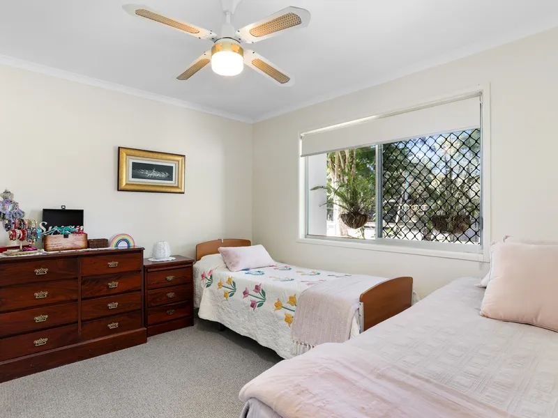 - Additional bedroom includes built-in robes and ceiling fans.