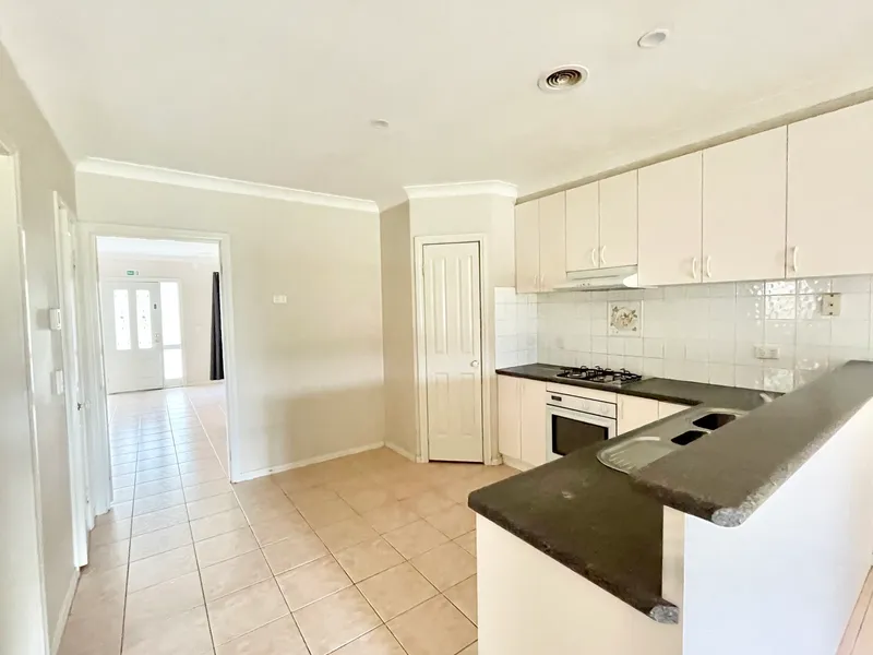 Neat 3 Bedroom townhouse, main bedroom with ensuite, walk-in robe and balcony, other bedrooms with built-in robes, open plan living, kitchen with gas appliances, corner pantry, ducted heating, split system, separate toilet, separate bathroom