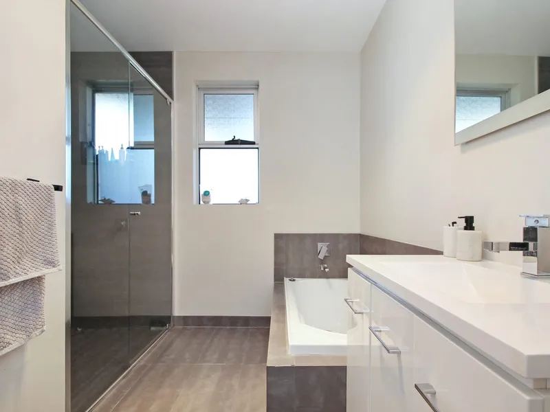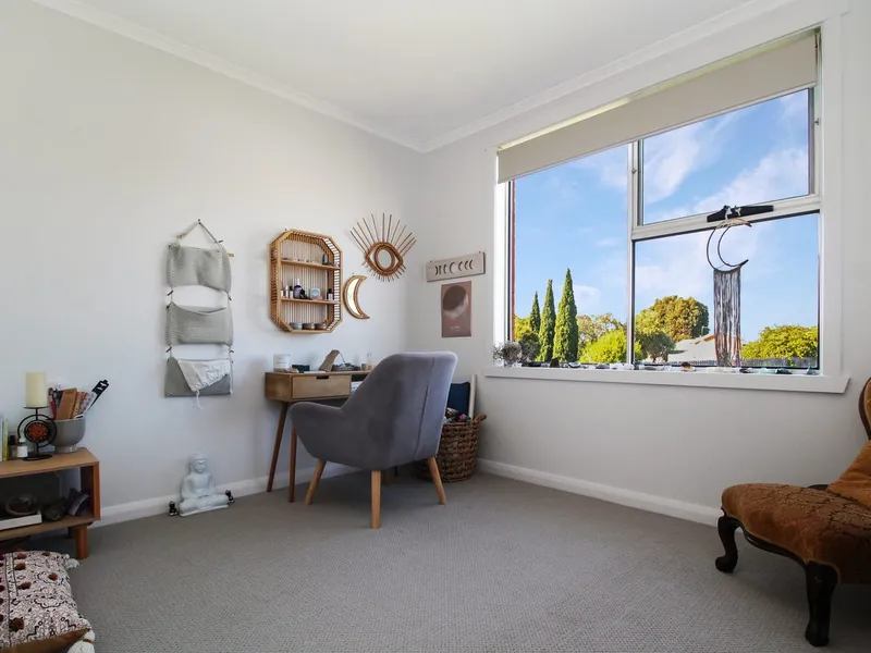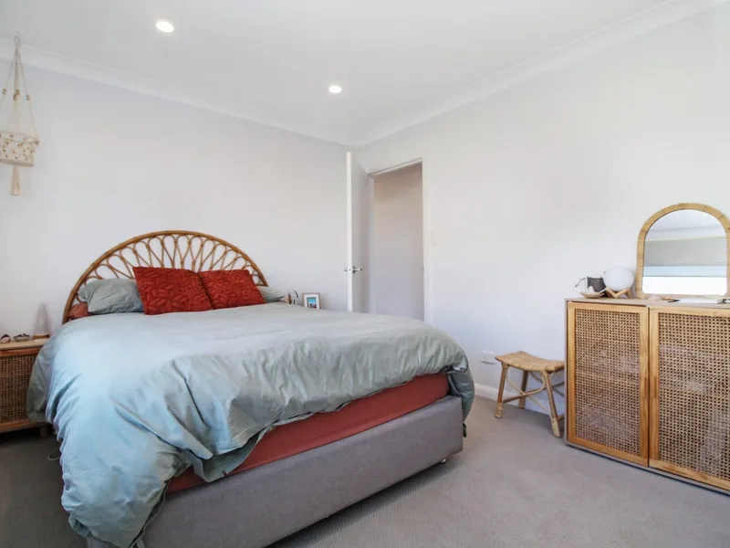 The home comprises three well-sized bedrooms, serviced by a stylish central bathroom complete with both a shower and full-sized bath, while a separate toilet adds everyday practicality.