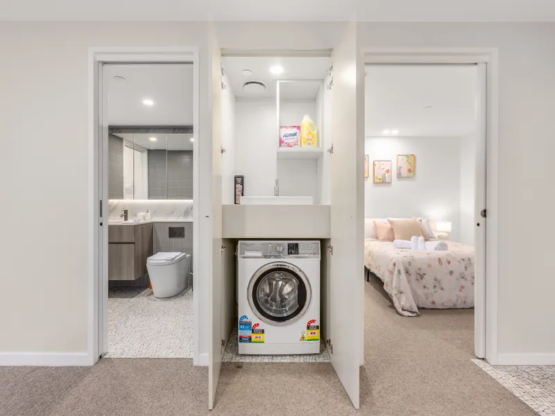 Short walk to the light rail station, popular restaurants, grocery stores, Coles, and Woolworths.