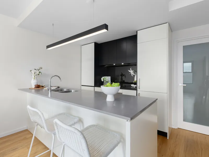 • Designer kitchen with stone benchtops and modern cabinetry