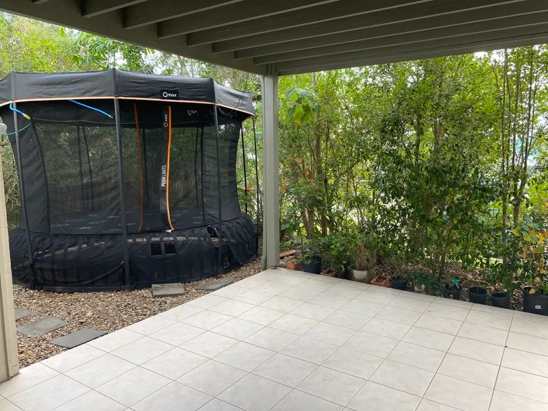 Downstairs features a large tiled rumpus room with kitchenette, large laundry, and a second covered entertaining area.