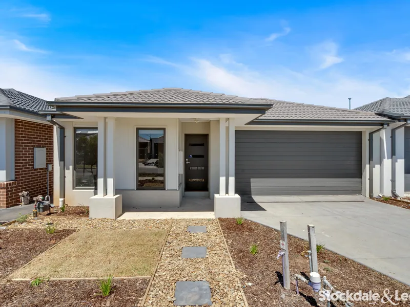 Located at 16 Dulce Street, this stylish near-new home offers contemporary living in a thriving and growing community. Just one year old, the property features four generous bedrooms, including a master suite complete with a walk-in robe and private ensuite. The remaining bedrooms are serviced by a modern central bathroom with a separate shower and bath.