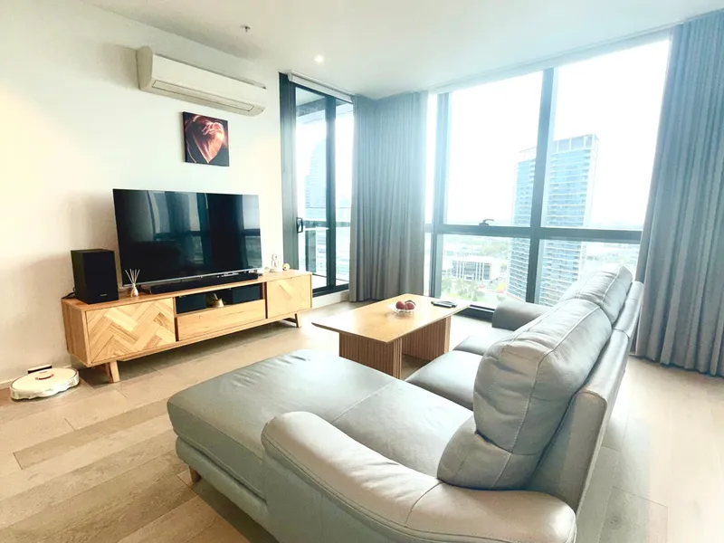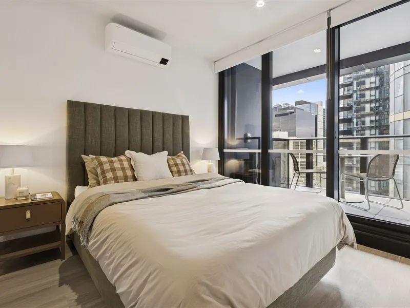 Furniture and appliances shown are of display apartment 1609 on Level 16, Floorplan type A07. This apartment listed is unfurnished and the furniture shown is not included. Fixtures, finishes, view lines, layout, and inclusions may vary. Prospective tenants are encouraged to inspect the property to confirm details.
