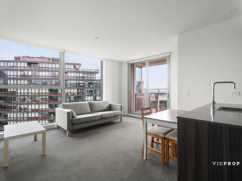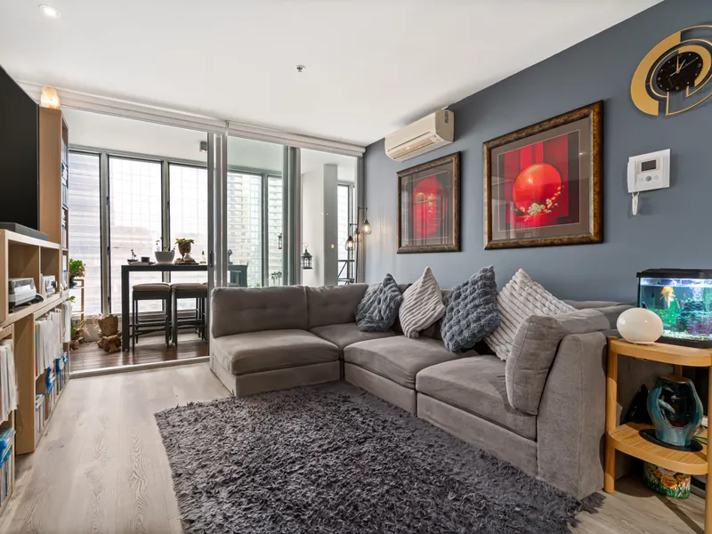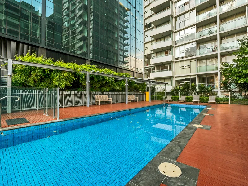 Positioned on the 15th floor in the sought-after Village Docklands complex, this well-maintained apartment offers generous space, modern updates, and a versatile floorplan just moments from the CBD. Enjoy open-plan living flowing to a light-filled winter garden with city views, complemented by a modern kitchen featuring an island bench, brand new oven, and added cabinetry for extra storage. A spacious study provides the perfect work-from-home setup.