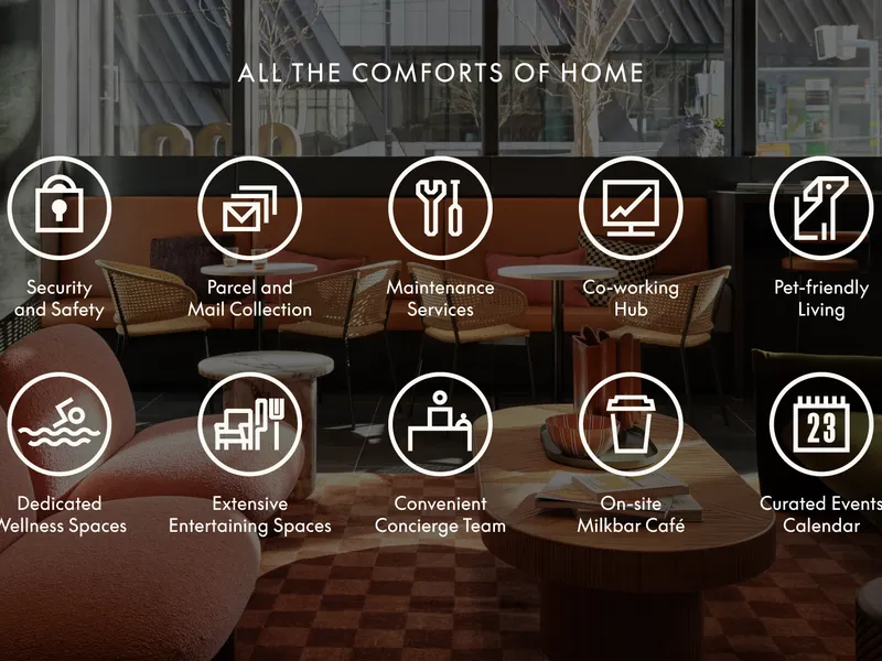 You will also enjoy access to hotel style services and resident amenities including a co-working hub, pool, state-of-the-art gym, infrared sauna, podcast studio, private dining spaces, beats lounge and much more.