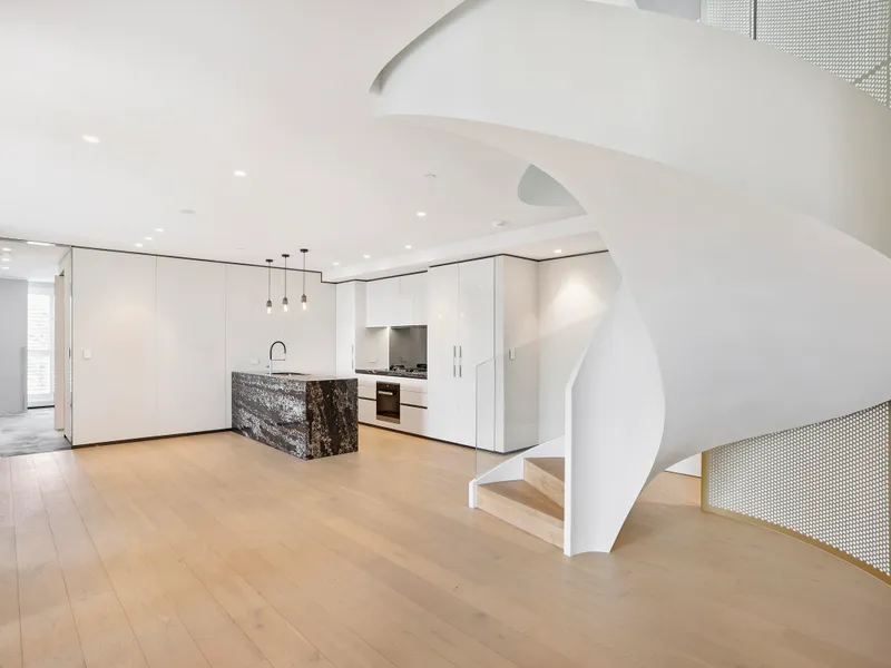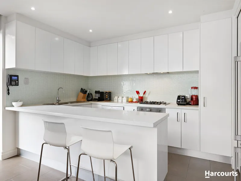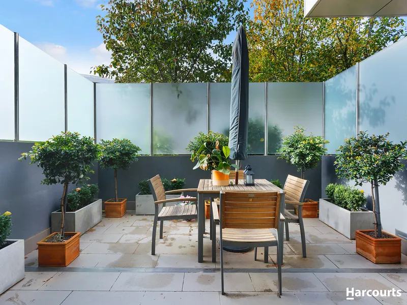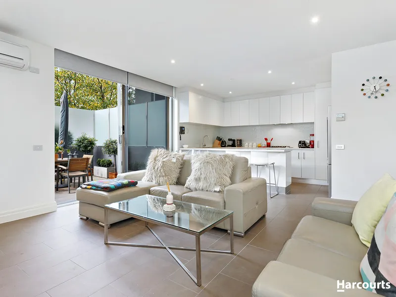 Superb tiled floors contribute to the low-maintenance ease of living and dining areas that flow to the courtyard - a perfect place to enjoy or entertain, complemented by precise paving, leafy aspects and stylish privacy screening.
