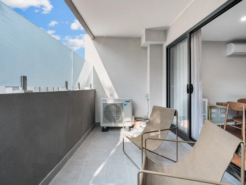 Step inside to discover a light-filled open-plan living and dining zone flowing seamlessly to a private balcony-perfect for relaxing or entertaining. The sleek kitchen features stone benchtops, quality stainless steel appliances, and an island bench, catering to both style and practicality.