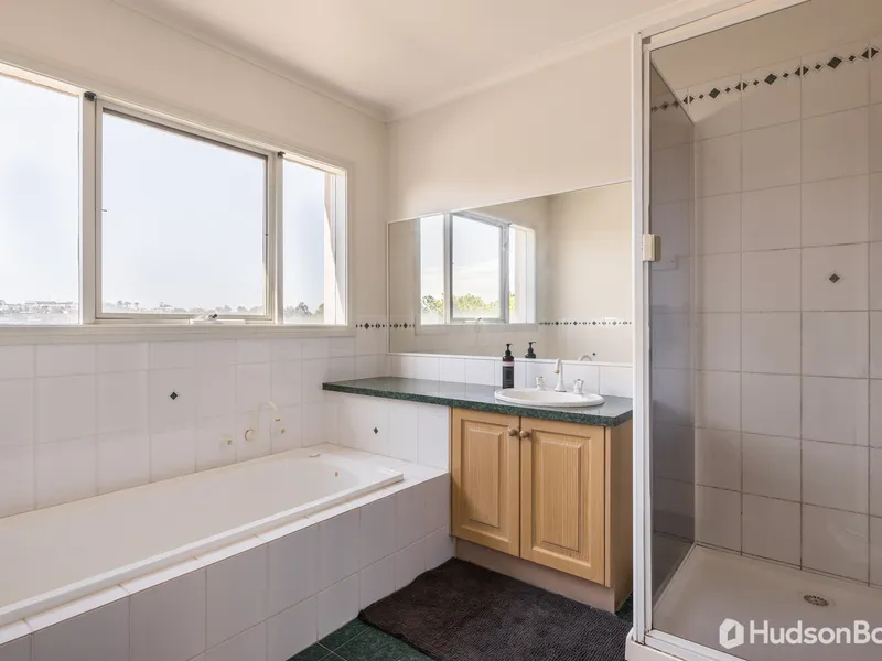 The bedrooms are tucked away from the main living areas. The master includes built-in robes, while all bedrooms share a bright bathroom with a separate shower and bath for convenience.