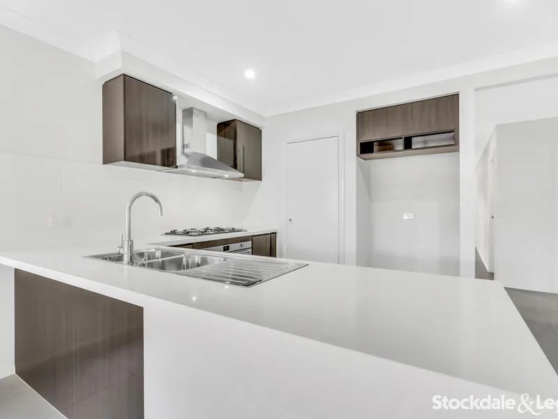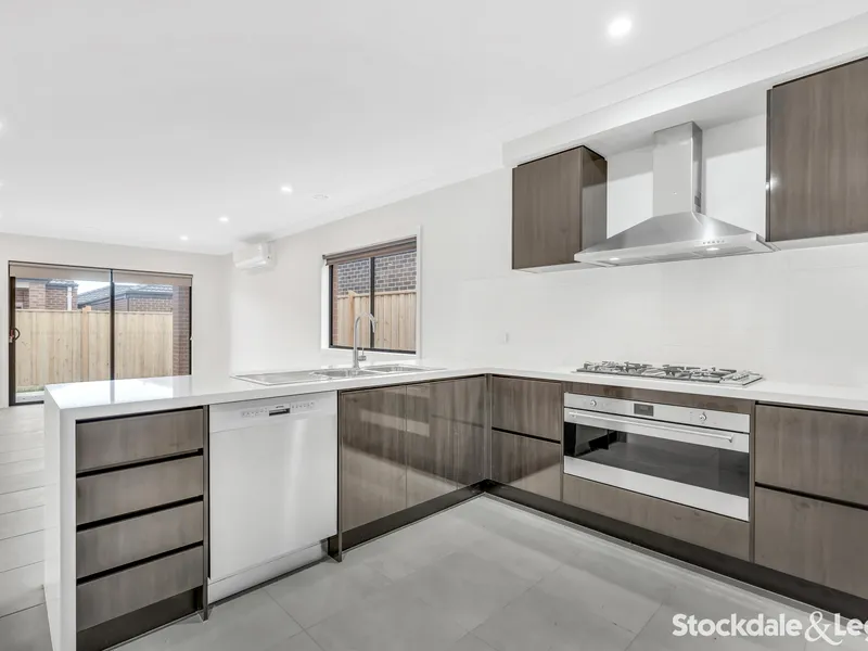 The central kitchen with quality appliances flows seamlessly into the open-plan living and dining area, leading to a large alfresco perfect for outdoor entertaining. The home also includes two modern bathrooms, a spacious backyard, and a double garage.