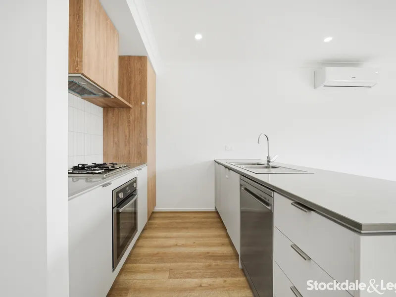 The modern kitchen is finished with quality fixtures and ample storage, while split system heating and cooling and laminate flooring throughout the living zones ensure comfort year round.