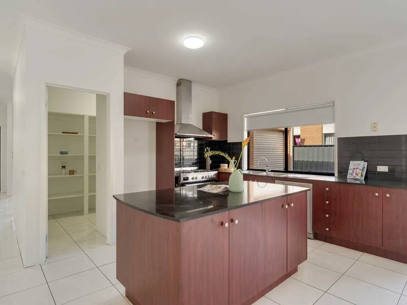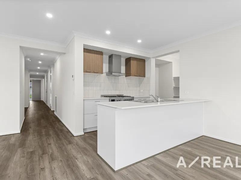Inside, the home showcases a contemporary kitchen complete with stone benchtops, stainless steel appliances, and a large 900mm oven, ideal for those who love to cook and entertain. The open-plan living and dining area flows effortlessly to the outdoor alfresco, creating a seamless indoor–outdoor lifestyle that’s perfect for gatherings with family and friends.