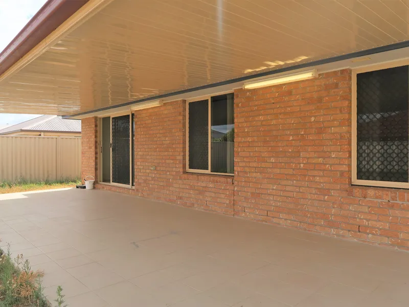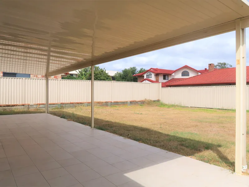 - large fully fenced backyard with undercover patio