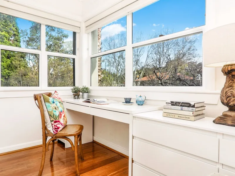 Set in a secure boutique block of 9 overlooking Guilfoyle Park, this spacious two-bedroom apartment boasts sundrenched interiors and a highly functional floorplan. Featuring two double bedrooms both with built-ins, a modern kitchen with gas cooktop and a dedicated sunroom perfect for a home office.