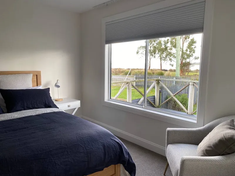 This sweet beach side cottage enjoys interrupted views to Kent beach and out across the Southern Ocean in the seaside village of Dover. The stunning water views can be seen from the two furnished bedrooms with queen beds and the open plan living area with dining nook. The home also features an additional bedroom fit for a study or home office. The home also has modern amenities including the two bathrooms and fully equipped kitchen.