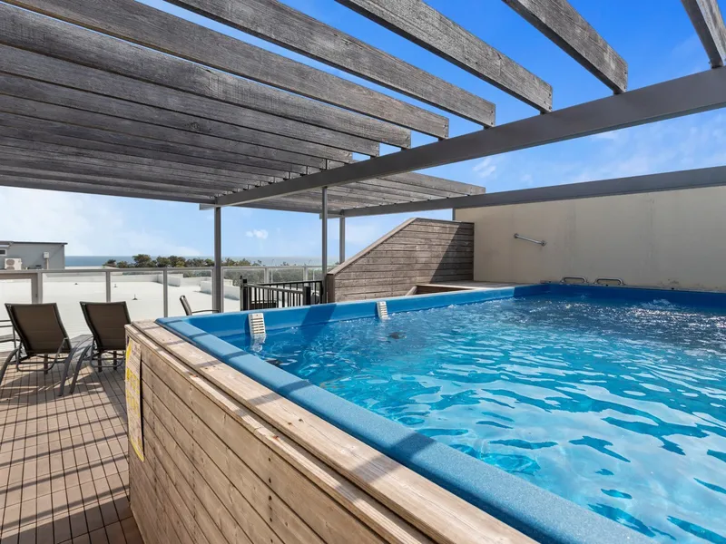 There is shared use of a rooftop lounge with panoramic views of Port Phillip Bay accompanied by a plunge pool offering plenty of summer fun. Secure car parking is provided by the gated car park on the ground floor at the back of the building, with internal lift access to each apartment.