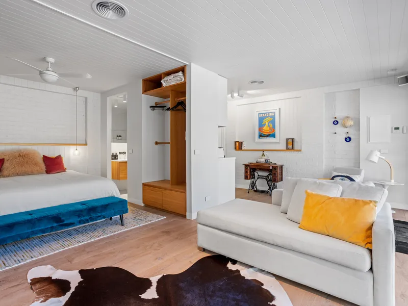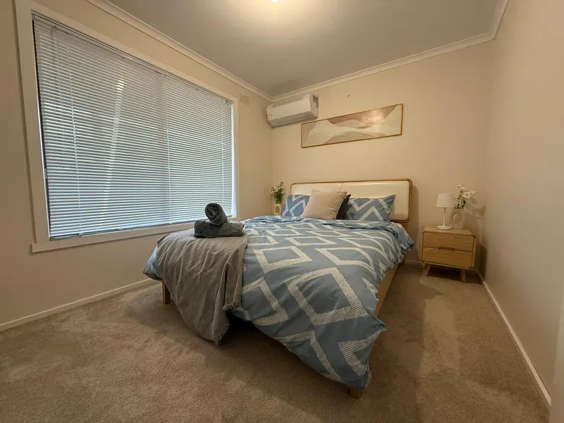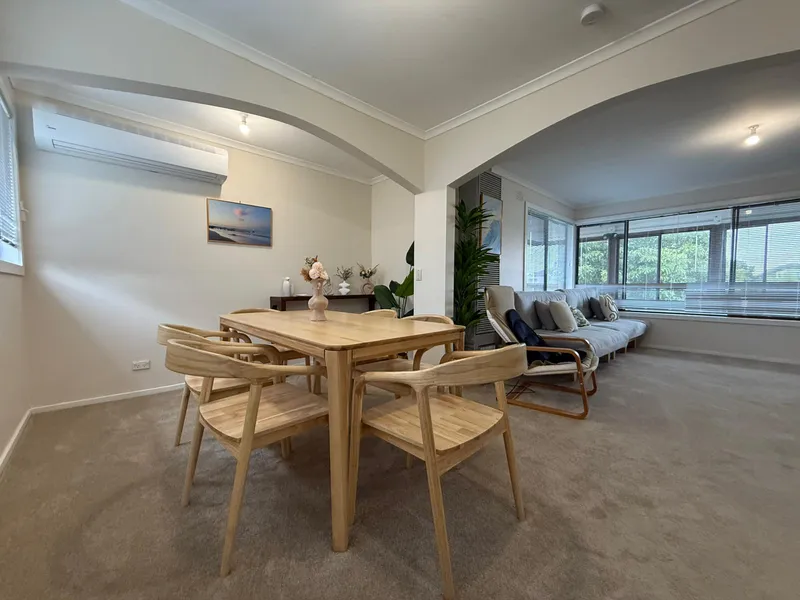 Experience a lifestyle of total ease in this beautifully presented, fully furnished residence. Defined by light and effortless style, the home features an expansive open-plan living area with plush carpeting and elegant arched entryways. Every room is designed for comfort, from the sleek kitchen with stone-look benchtops to the restful bedrooms—each complete with timber-framed beds, stylish decor, and individual split-system air conditioning.