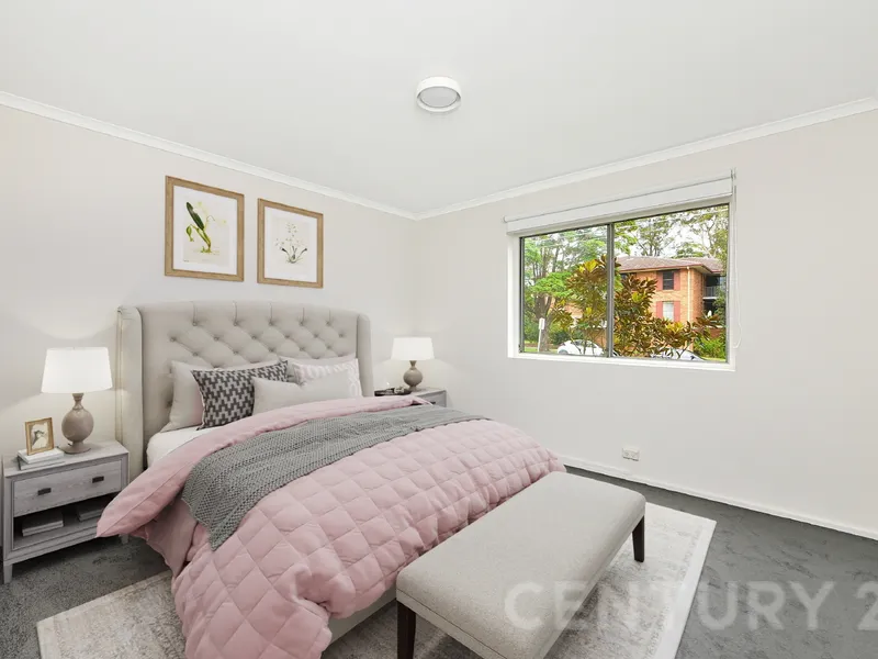 The modern kitchen is equipped with quality appliances and stone benchtops, while the beautifully updated bathroom and separate W.C. add extra functionality. Set within a well-maintained building surrounded by manicured gardens, residents can also enjoy generous common outdoor areas including a large rear lawn perfect for relaxing or entertaining.