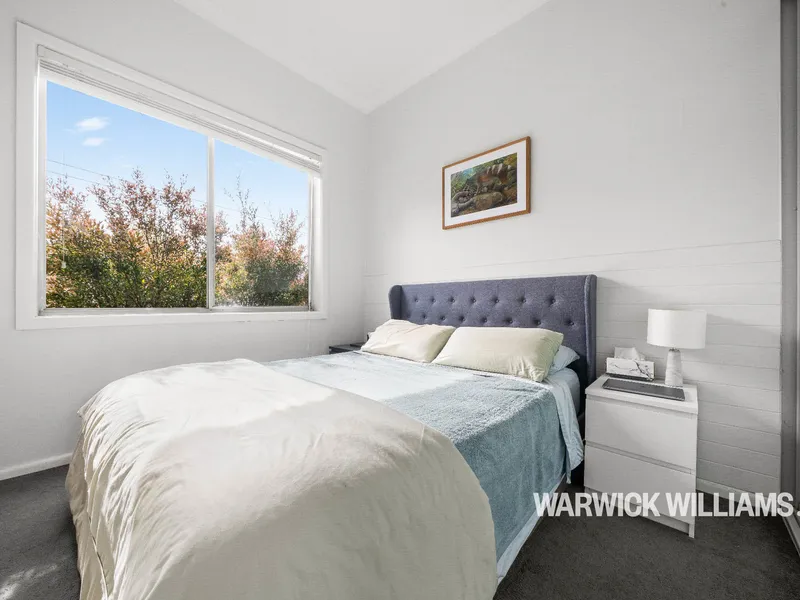 There are two generous bedrooms, including a main with built-in wardrobe. Outside, a private rear garden offers a peaceful retreat with a lawn, patio, and storage shed — ideal for relaxing or entertaining. Additional features include air-conditioning, a dishwasher, and a flatscreen TV.