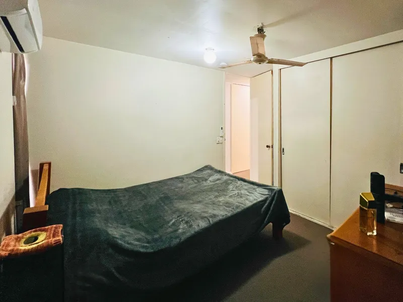 - Main bedroom with built-in wardrobe, air-conditioning, and ceiling fan