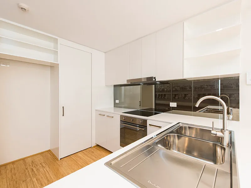 The modern kitchen features quality appliances, ample overhead storage, and generous bench space.