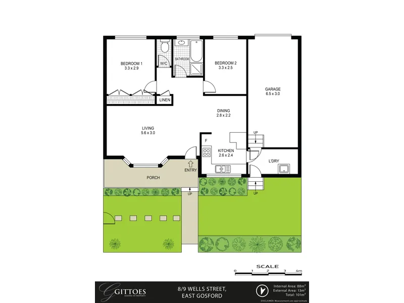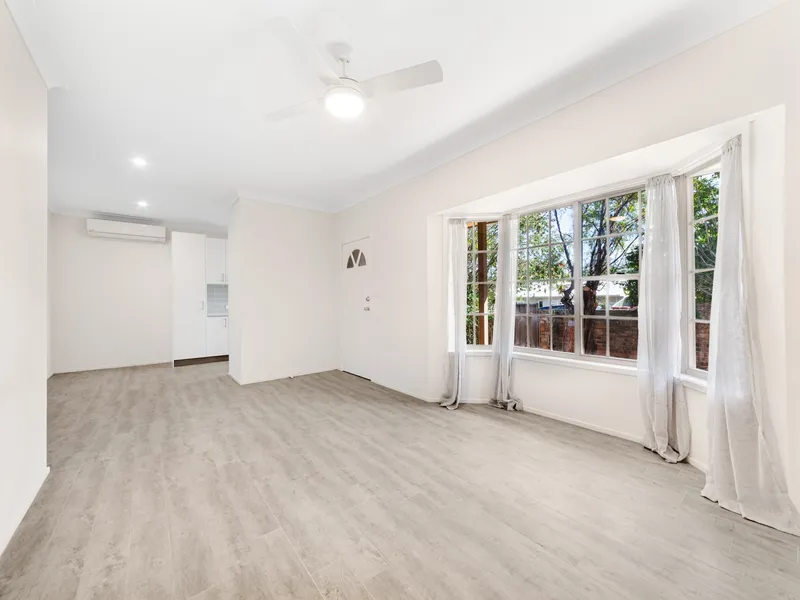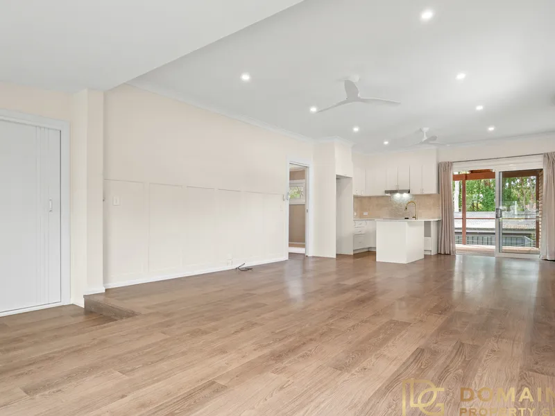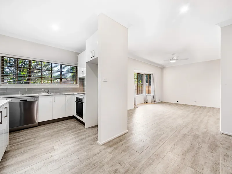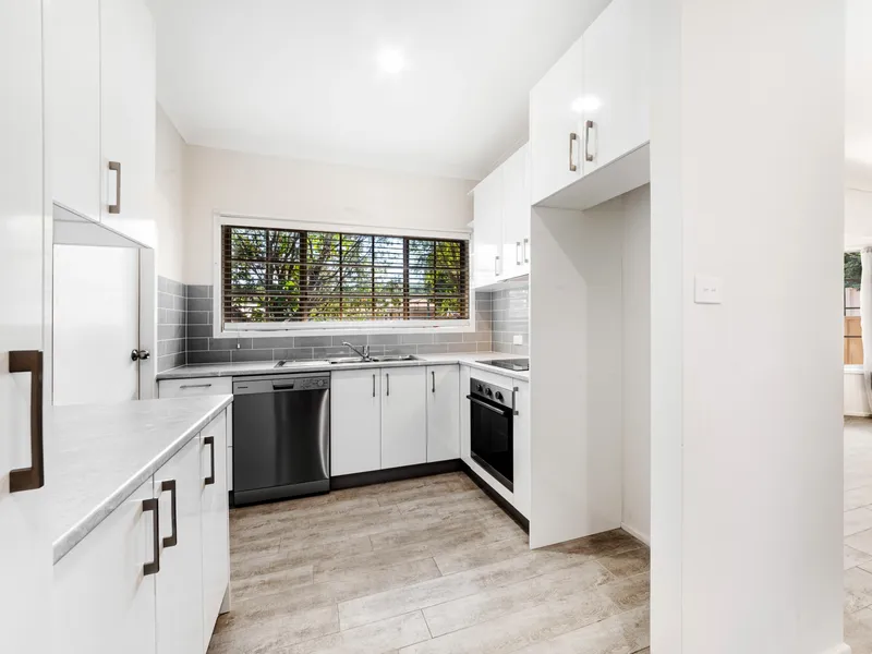 The home is immaculately presented with fresh paint and new flooring throughout, a recently renovated kitchen with stainless steel appliances and great storage, original bathroom with separate bath tub, reverse cycle air-conditioning, an open-plan sunny living area which leads out to a secure north/west-facing grassed courtyard and established landscaped gardens. There is internal access to the single lock-up garage and the laundry.