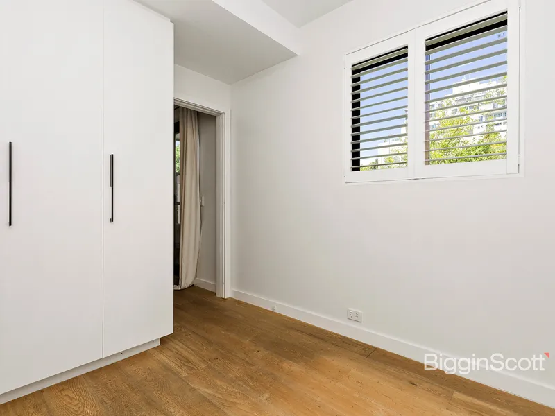 Featuring two spacious bedrooms with built-in robes, an open-plan living area flowing onto a private balcony, and a sleek modern kitchen with stone benchtops and premium European appliances, including a dishwasher. The sparkling bathroom, along with ducted heating and cooling, ensures both style and comfort. Located in a boutique building with only 29 residences, this apartment also includes one off-street car space. Just metres from Fitzroy Gardens and some of Melbourne’s most beautiful green spaces, with Smith Street’s vibrant cafes and restaurants, public transport, and the CBD right at your doorstep.