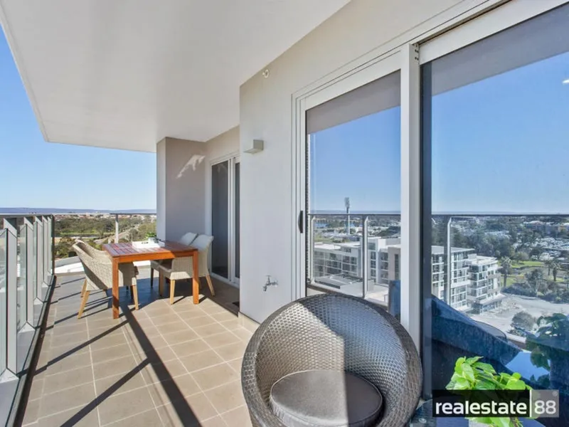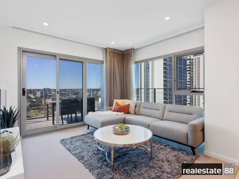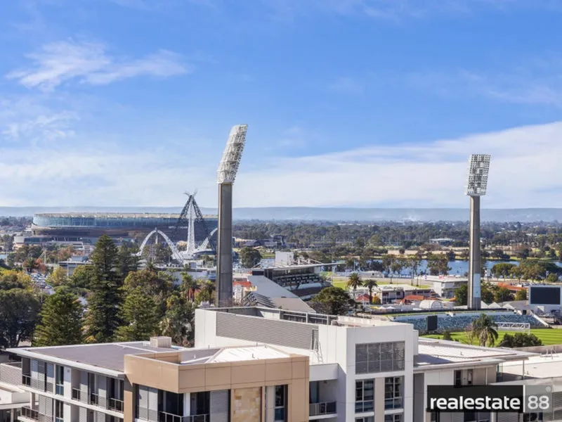 2. Enjoy a stunning living area which flows out to your entertainers wrap around balcony with views of Burswood, WACA and the famous Sean River Swan River.