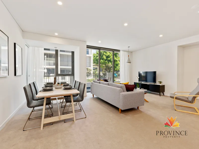 Entry is via your own private terrace gate, creating an immediate sense of arrival more akin to a private residence than a conventional apartment. Framed by garden beds and generous outdoor space, the terrace forms a welcoming introduction to an apartment that has been thoughtfully furnished for both comfort and practicality. Inside, the floorplan is spacious and well resolved, centred around a large open plan living and dining zone, a quality SMEG-appointed kitchen with stone benchtops and ample storage, and three queen-sized bedrooms, each fitted with built-in robes. The master suite enjoys its own elegant ensuite with separate shower and soaking bathtub, while bedrooms two and three open directly onto a second terrace through full-height sliding glass doors.