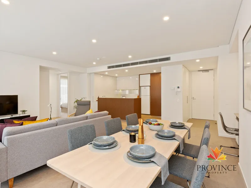 A rare ground floor offering within the prestigious Queens Riverside Q2 complex, this substantial three-bedroom residence combines the ease of apartment living with the added appeal of private outdoor space and direct terrace access. Set within one of East Perth’s most highly regarded addresses, the home delivers style, comfort and exceptional amenity in equal measure.