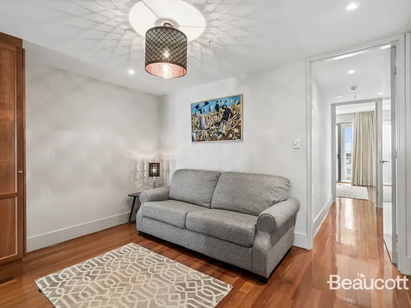 The apartment showcases a generous open-plan layout with two dining areas, large bedrooms, quality cabinetry, stone benchtops and modern bathrooms. Residents also enjoy access to resort-style facilities on the 18th floor, including a heated pool, gym, spa, sauna, entertaining area and residents' lounge, all within a secure and professionally managed complex.