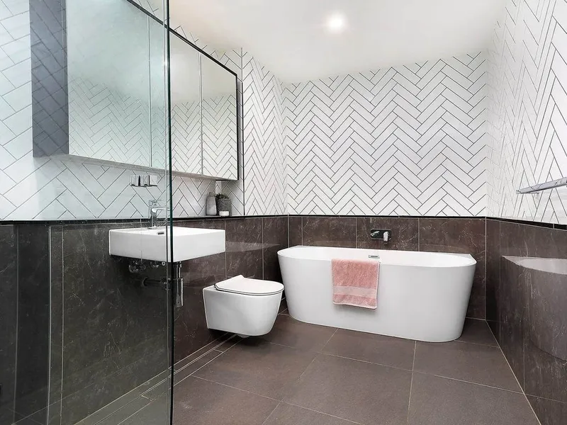 - Bathrooms present stunning herringbone tiles & stylish fixtures