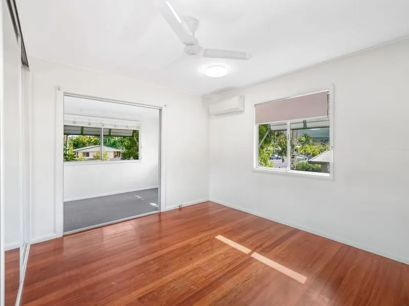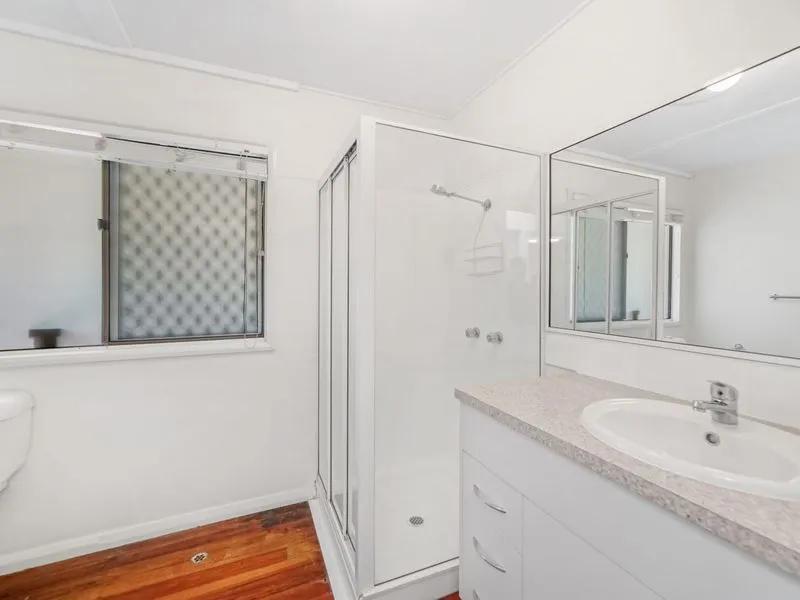 This high set three bedroom home has ample kitchen storage and a fresh, modern bathroom. The property boasts polished timber floors and air conditioning.