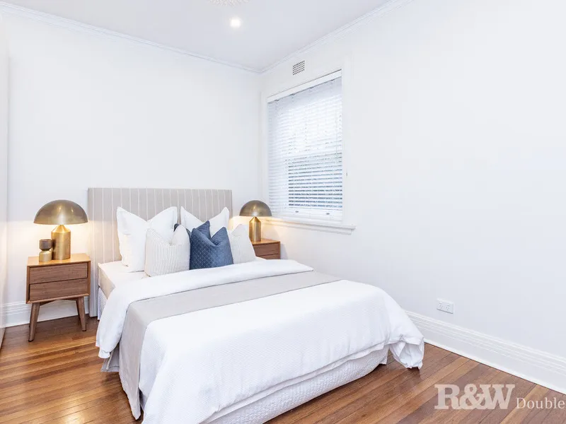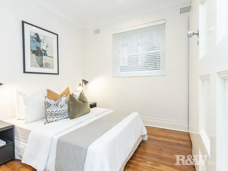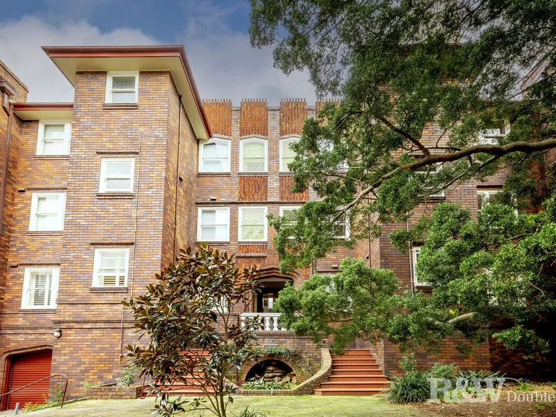 Occupying a premier lower-level setting in a boutique block of 12, this superb two-bedroom Art Deco apartment exudes a sense of quiet elegance and character throughout.