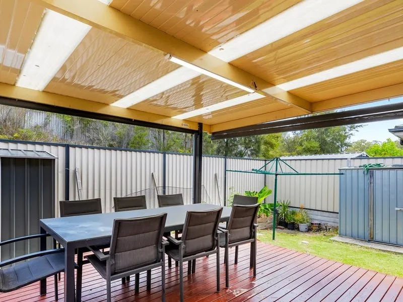 At the heart of the home, the open-plan living and dining area flows seamlessly to a covered timber alfresco deck, creating the ideal setting for year-round entertaining. The low-maintenance backyard features a level lawn, garden beds, and excellent privacy.