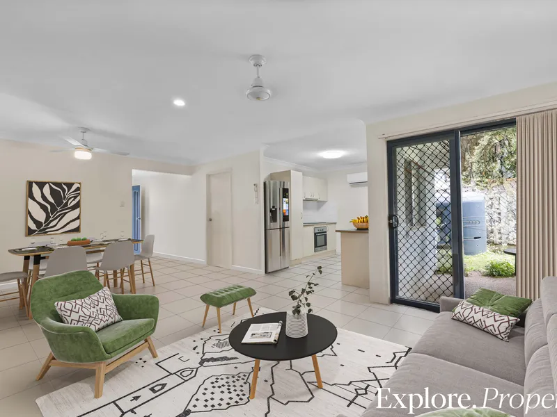 Featuring an open plan living and dining area, the home is designed for easy everyday living, complete with air conditioning to the main living area and two of the bedrooms for year-round comfort.