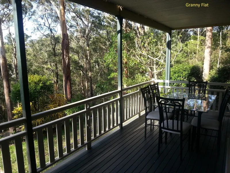- Private deck overlooking the tiered gardens and bushland