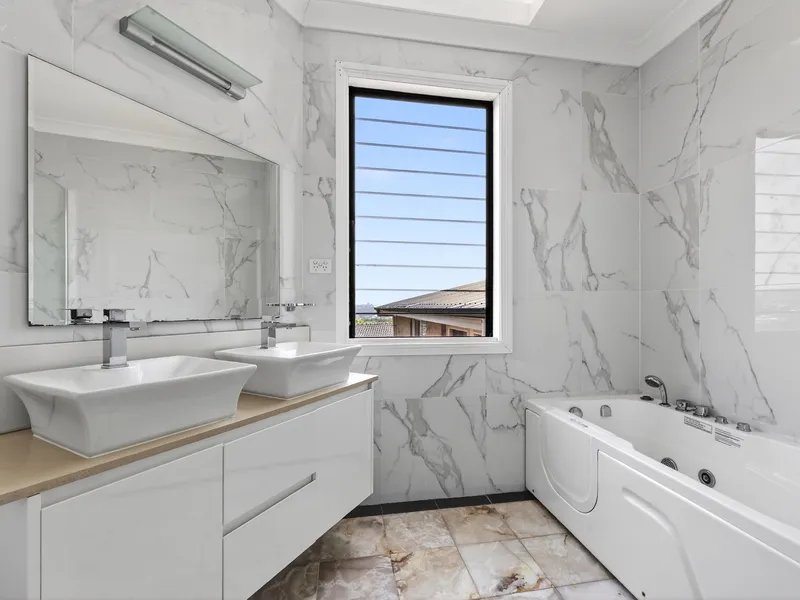 Experience the perfect blend of space, style, and functionality in this expansive family residence. Boasting five generously sized bedrooms—three with double walk-in robes and the remaining with mirrored built-ins—this home caters to both comfort and convenience. The four well-appointed bathrooms include two with bathtubs, one featuring a relaxing spa bath.