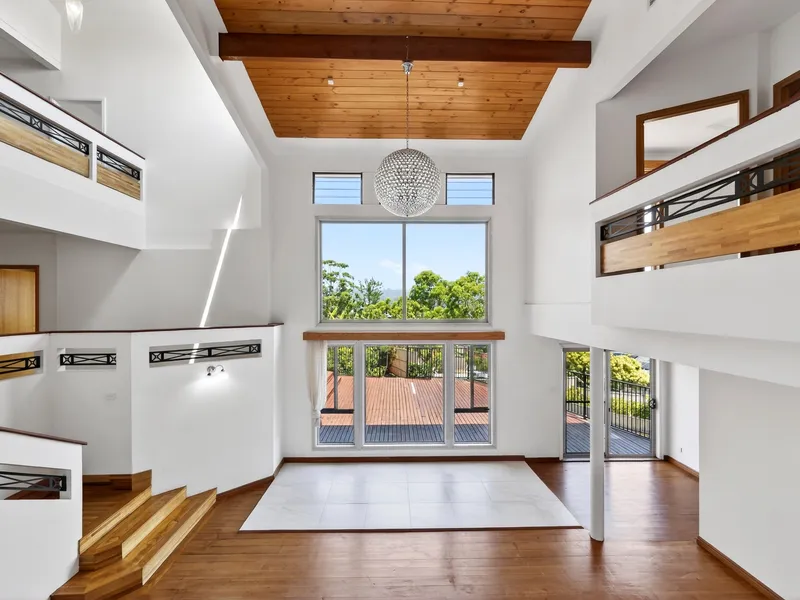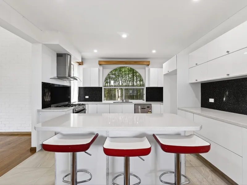 The heart of the home is the updated kitchen, equipped with a large 5-burner gas stove and dishwasher, seamlessly flowing into the open-plan dining and two spacious living areas. Step out onto the massive deck from the lounge room and soak in the stunning vistas, making it an ideal spot for entertaining or unwinding.