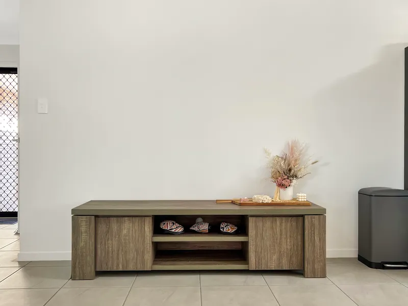 Situated in the newer section of Eli Waters, this home provides easy access to schools, shopping centers, hospitals, and more, all while enjoying the tranquility of a location removed from busy main road traffic. The well-appointed kitchen is equipped with ample cabinetry, generous countertop space, and a dishwasher, complemented by the cooling comfort of the air-conditioning unit in the lounge room.