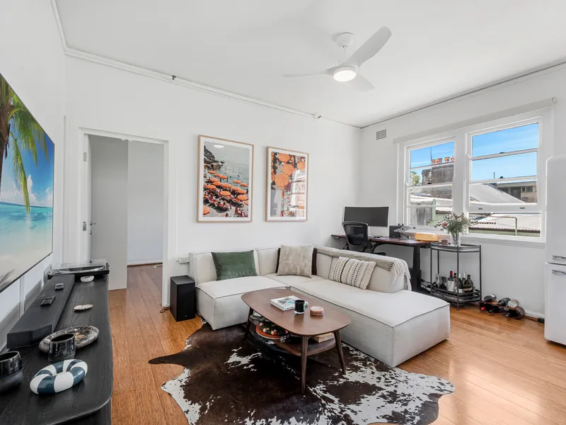 Located on the second floor of an Art Deco building, this modern, tranquil and spacious apartment enjoys leafy views over Lawrence Hargrave Reserve.