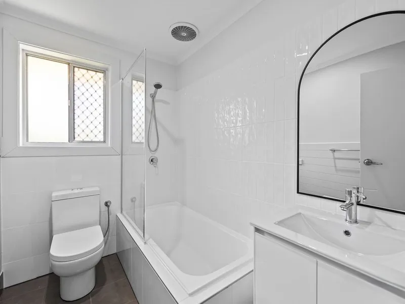 Sparkling renovated bathroom plus separate toilet